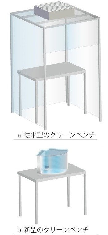 In place of conventional clean booths and clean benches, it is possible to realize low cost, small-space and energy-saving. Cleanliness and arrival time are overwhelmingly improved compared to conventional clean benches, etc., and dust from outside is not entrained. It shows its power in assembly, various inspections, hand washing, etc.
