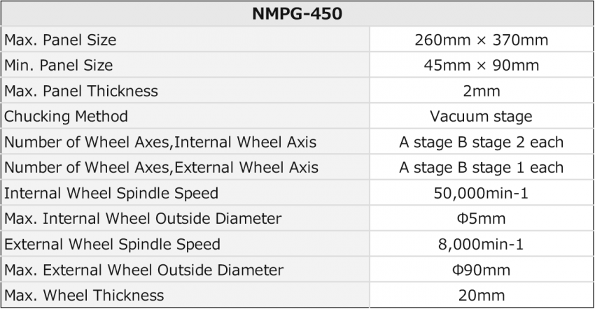 A device for processing touch panels, smartphone covers, photomask substrates, and flat glass of wafers.
