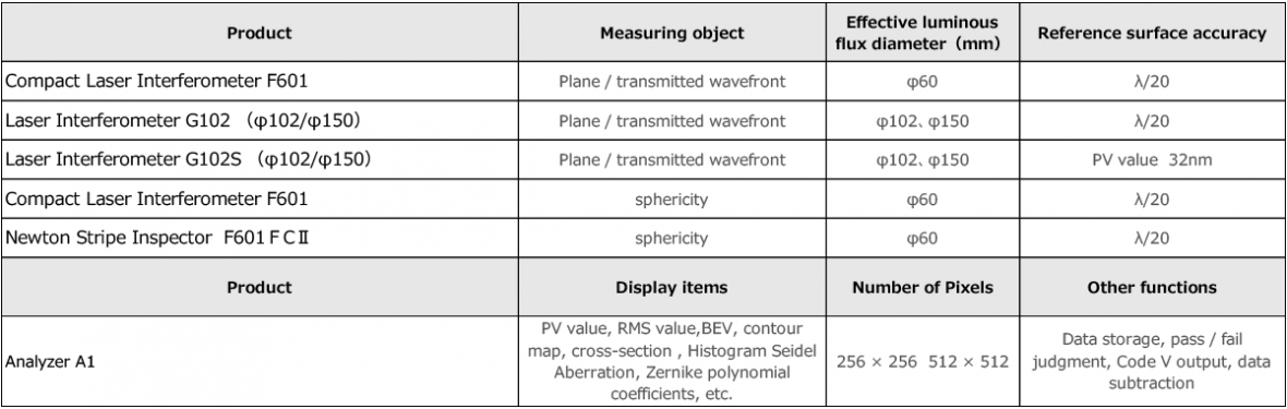 Regardless of the sample material, most flat and spherical surfaces can be measured contactlessly if it is a polished surface (mirror surface). It also has an analyzer that automatically analyzes and quantifies interference fringes.