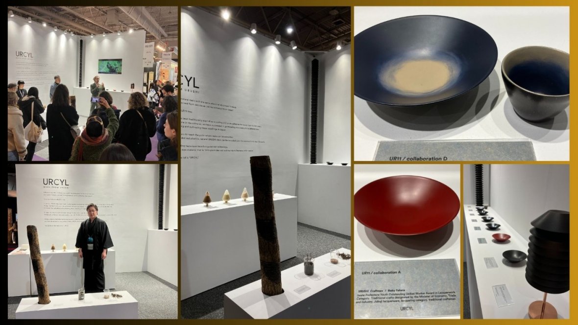 ELEMUSブースでは、木粉と漆樹液の100%木質素材のURCYL(アーシル)を展示しました。