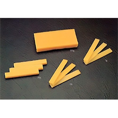 仮接着用ワックス 金属、ガラス、結晶類加工、精密研磨、切断工程(カッティング、スライシング)の仮止め用接着剤 特徴 低温で溶解し、粘度が低く薄く貼れ、短時間で固まり、作業性が良い 仕様 スロットワックス…金属、ガラス、結晶類加工用 イエローワックス…精密研磨加工用 シーエスワックス…切断工程(カッティング、スライシング)用 ACワックス…精密ガラス、精密金属類加工用など
