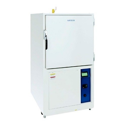 クリーンオーブン HEPAフィルターを内蔵し、高温時も清浄度を維持する装置です。 特徴 高温用HEPAフィルターを内蔵し、庫内をクリーン化します。 庫内設定温度は60~200℃です。 庫内背面から吹き出される高温クリーンエアーが循環します。 部品、冶具の乾燥や焼き付けに利用されます。 仕様 清浄度: クラス100 (高温用HEPAフィルター) 庫内温度: 60~200℃、温度制御: PID制御 電源: AC200V 3相 50/60Hz 設備電力: 最大約3,900VA、送風運転時: 約820VA