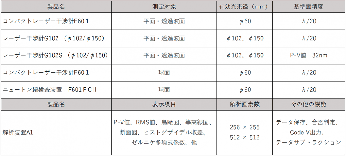 FUJINON レーザー干渉計 サンプルの材質によらず、研磨面(鏡面)であればほとんどの平面、球面形状を非接触で測定が可能です。また、干渉縞を自動的に解析し数値化する解析装置も揃っております。 特徴 平面形状、球面形状をナノメーターオーダーで測定。 非接触による測定で被検体にキズを付けることなく簡単に合否測定が可能。 ガラス、金属、セラミック、プラスチック等の形状測定に最適。 コンパクトレーザー干渉計としてシェア世界一。
